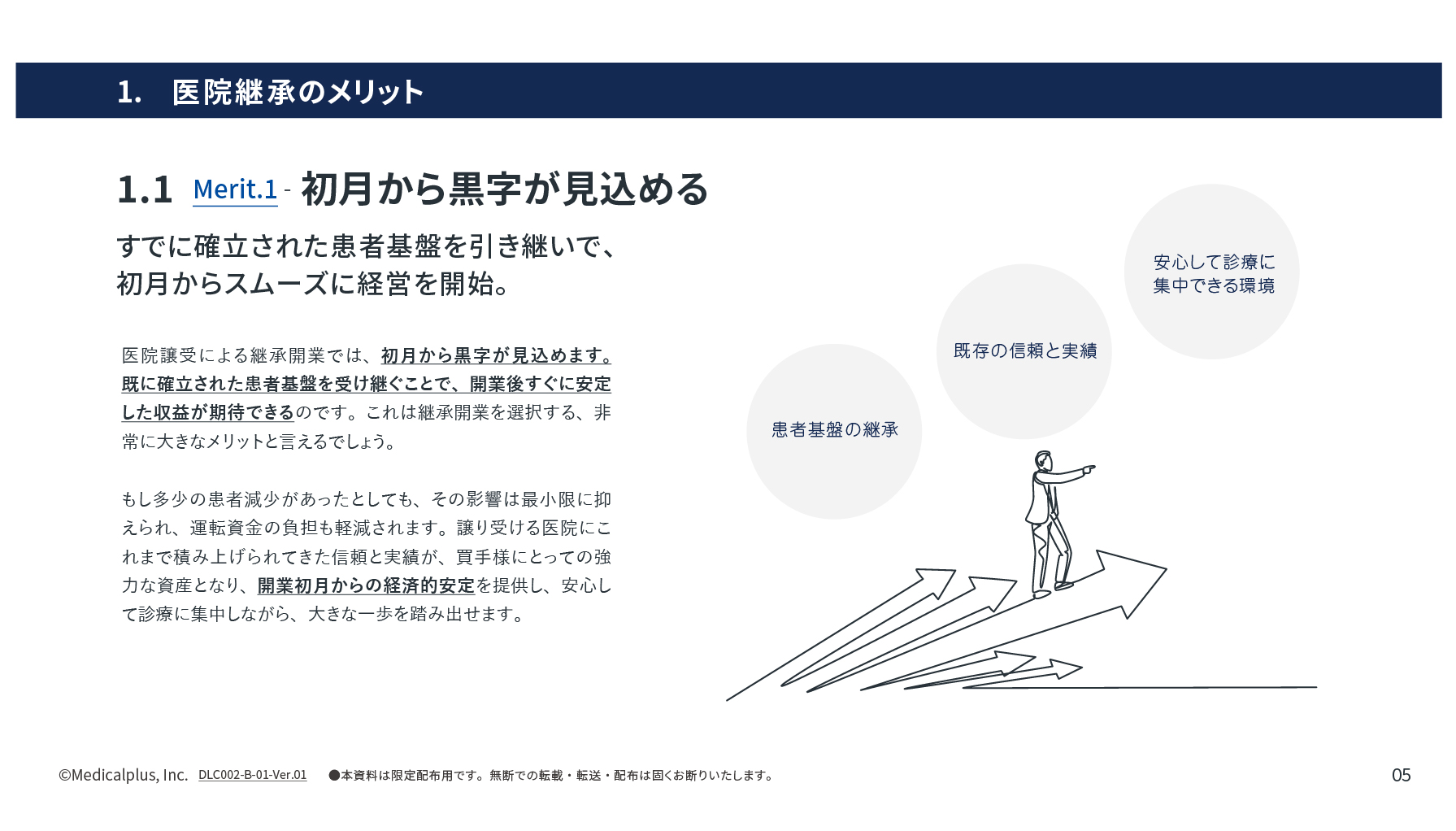 - 医院継承のメリット(初月からの黒字/初期投資の抑制 ほか)