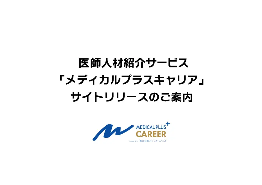 医師人材紹介サービス「メディカルプラスキャリア」サイトリリースのご案内